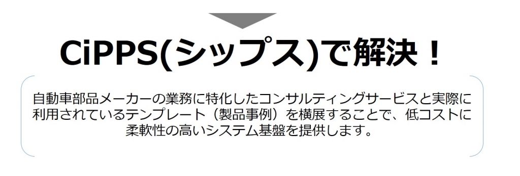 「CiPPS」は自動車部品メーカー向けの業務を網羅しております。機能単位の導入も可能です。