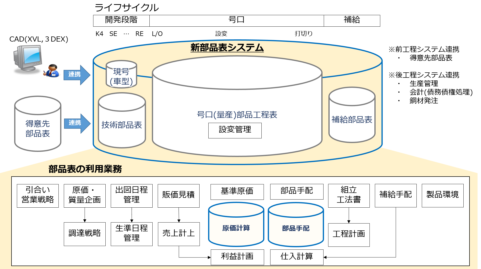 部品表情報を管理するしくみが無く、各部門がそれぞれのニーズでExcel表をハンドで作成し、業務を取りまわしているため部品手配や原価計算、その他生準業務において部品原単位の情報整備と精度チェックに膨大な工数が掛かっている。